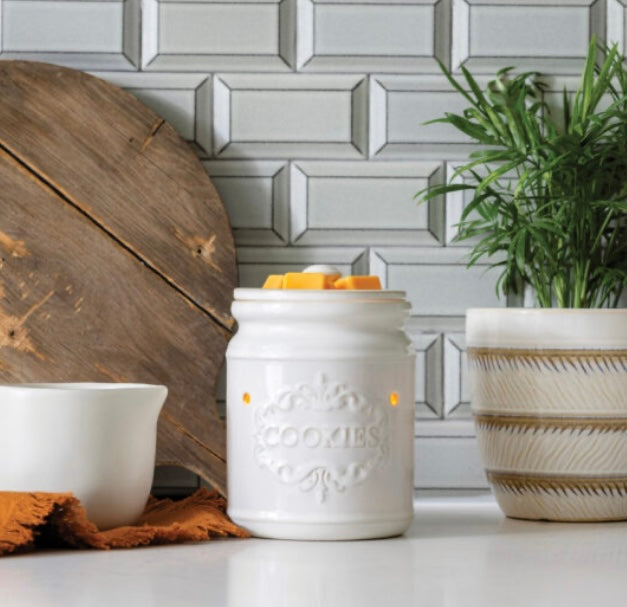 DESIGN: Add a touch of cozy nostalgia to your space with our Classic Cookie Jar Fragrance Warmer. Inspired by the charm of vintage kitchenware, this white porcelain warmer blends timeless style with everyday function. The word “Cookies” is gracefully embossed on the front, framed by delicate French scrollwork—bringing the heartwarming feel of fresh-baked memories to any room. Carefully crafted with attention to detail, it’s a beautiful nod to tradition with a modern twist.