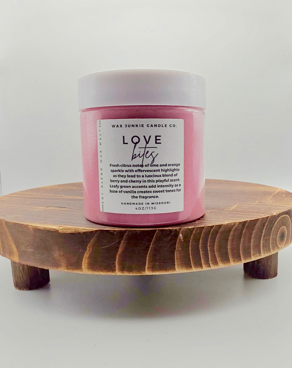Sweet, sassy, and a little bit wild—Love Bites is a playful pop of fresh lime and orange, sparkling with juicy brightness. Bursting into a luscious heart of berries and cherries, this scent flirts with your senses, while leafy greens add a twist of freshness. A smooth base of vanilla wraps it all up in irresistible sweetness.